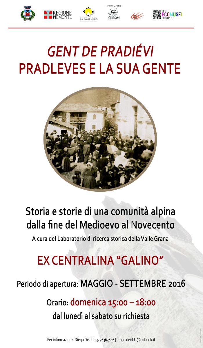 Mostra tematica sull'evoluzione sociale, politica, economica e storica della comunità di Pradleves (CN) in Valle Grana. Organizzata in Pannelli.