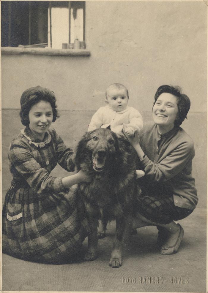 Immagine che ritrae due giovani donne, una bimba piccola e un cane all’aperto