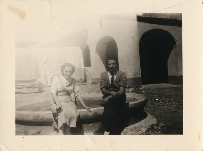 Immagine che ritrae una donna e un uomo di mezza età seduto accanto a una fontana in una piazza
