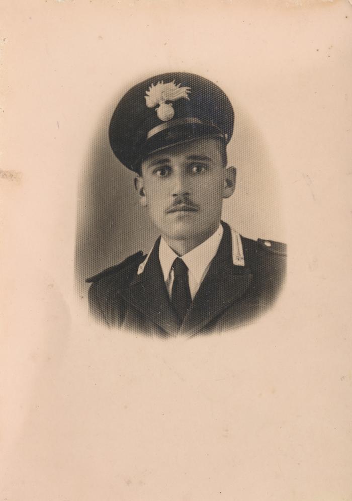 Ritratto posato di un uomo di mezza età in divisa da carabiniere in interno